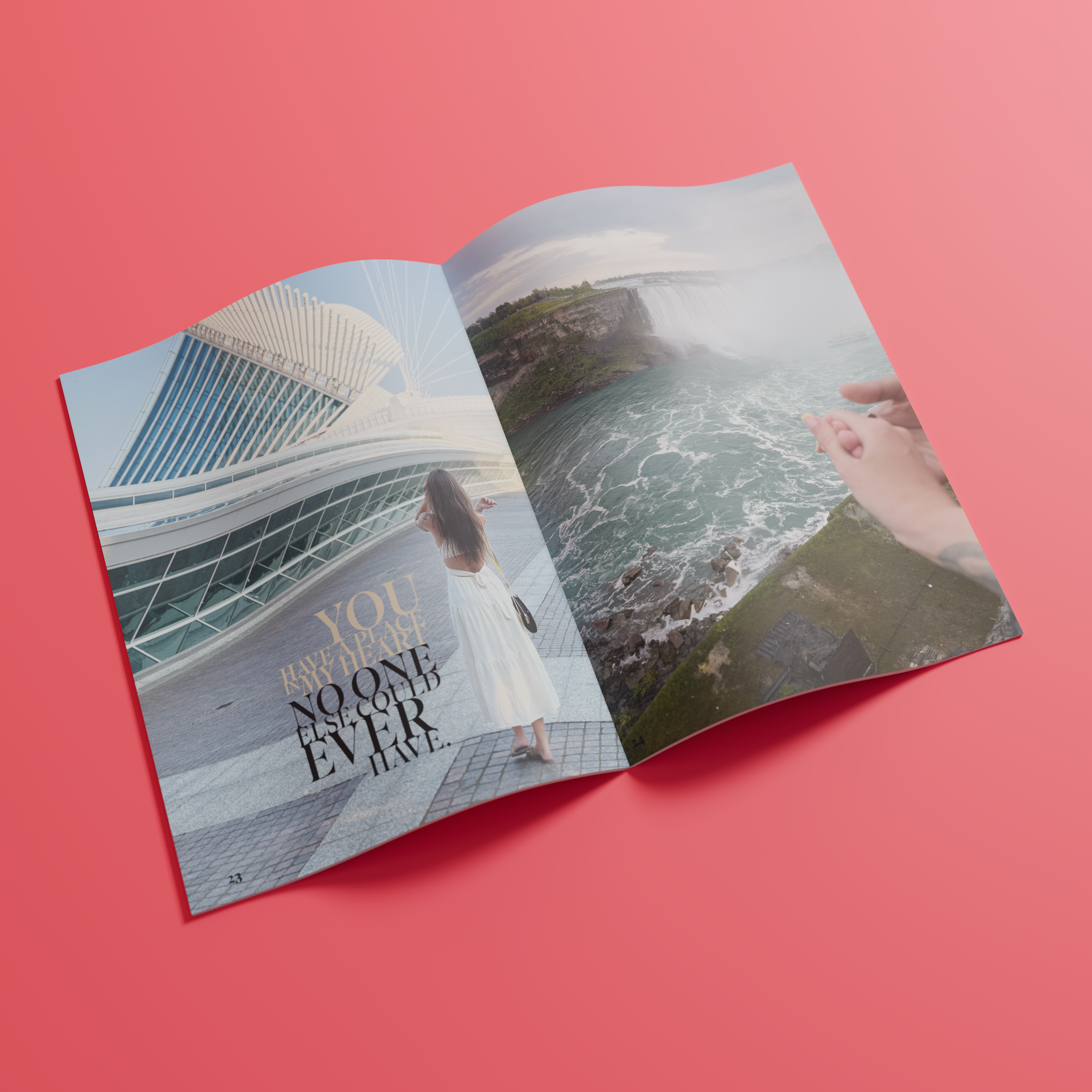 This magazine celebrates one year of love through curated photography, custom typography, and personalized storytelling. Designed using my partner’s favorite color palette and tactile paper textures to evoke nostalgia and intimacy.