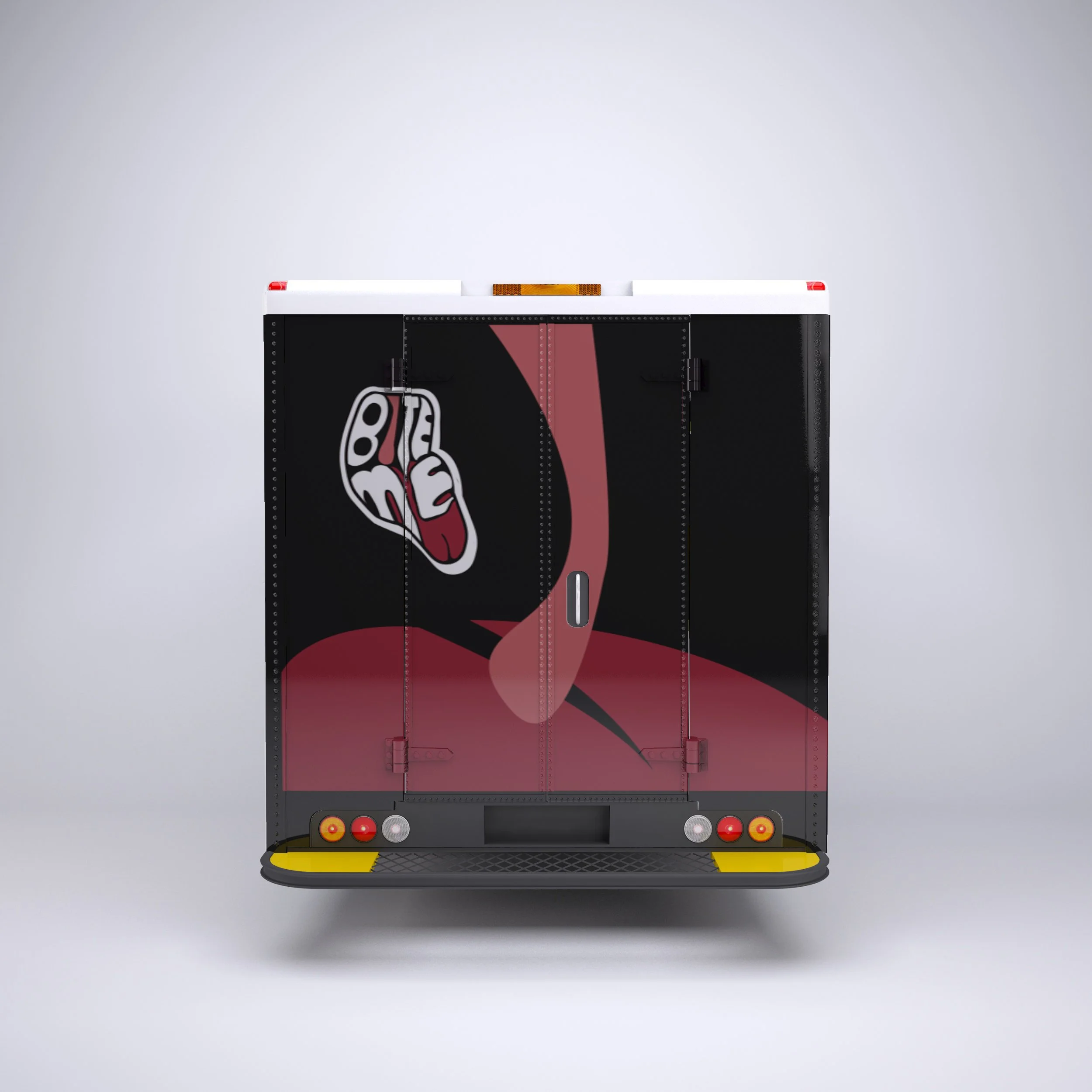 To add more playfulness, I created the design on the truck with the same ideas. I’m playing with that iconic mouth imagery, using teeth outlines along the top to grab attention, while the door and back of the truck give a peek inside the mouth- literally! It’s bold, playful, and totally unforgettable.